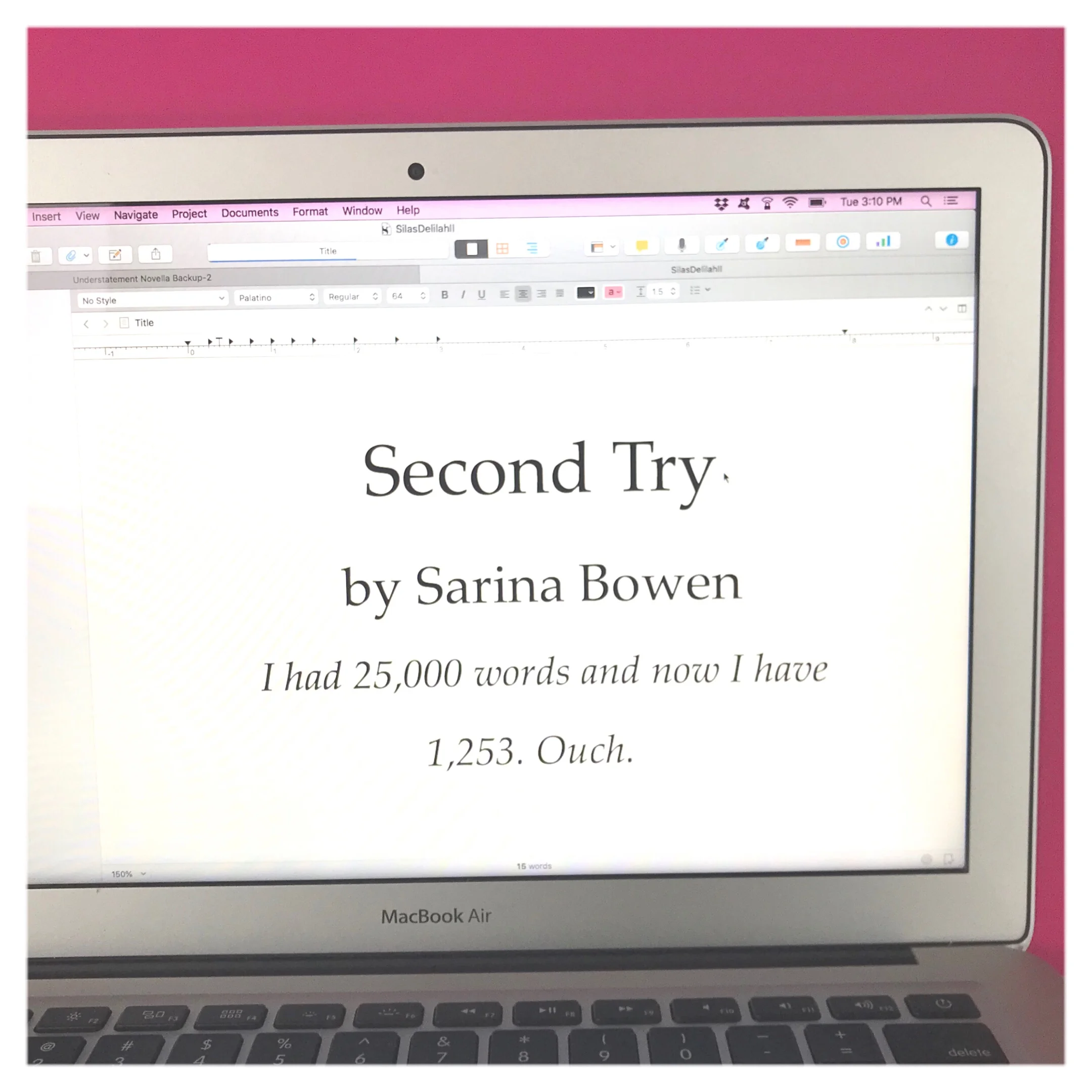 So I did the difficult thing. I deleted everything. The whole book. I opened a fresh file and started again, with a different plot for these characters.
